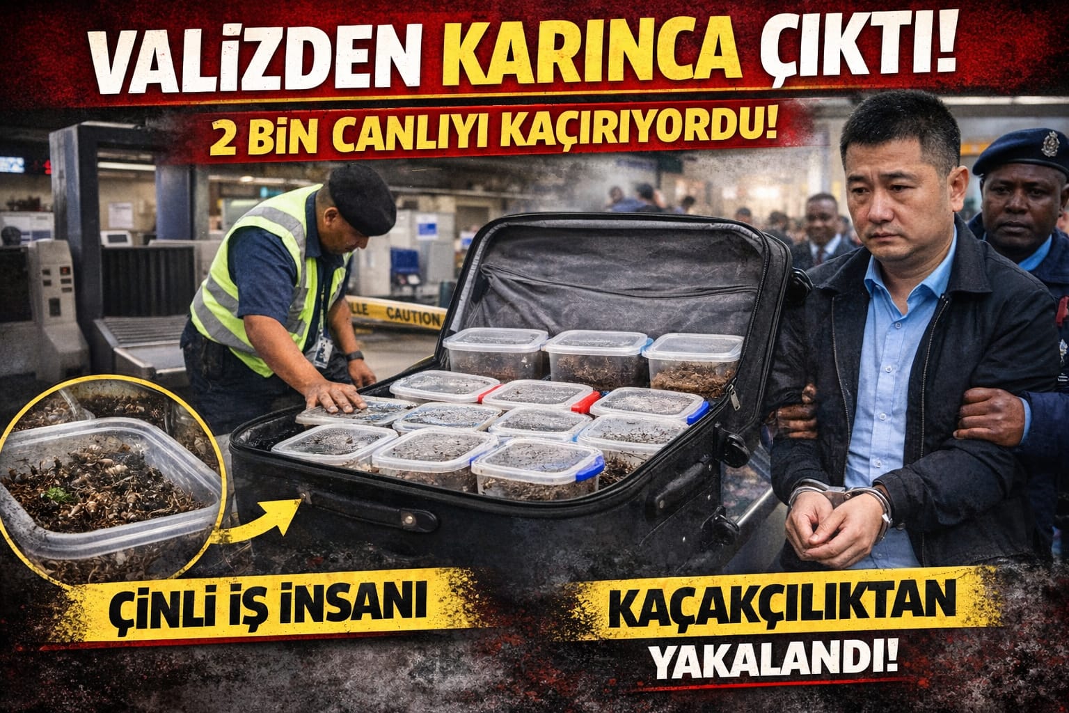 🟥 VALİZDEN 2 BİN CANLI KARINCA ÇIKTI! ÇİNLİ İŞ İNSANI KAÇAKÇILIKTAN YAKALANDI