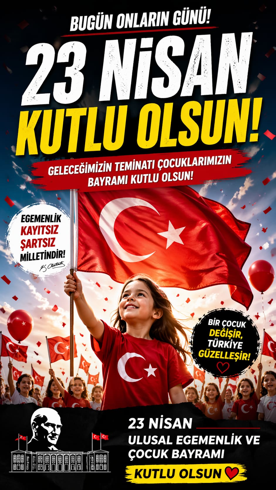 23 Nisan, her yıl olduğu gibi bu yıl da çocukların neşesi ve umut dolu mesajlarıyla Türkiye’nin dört bir yanında birlik ve beraberlik duygusunu pekiştirdi.