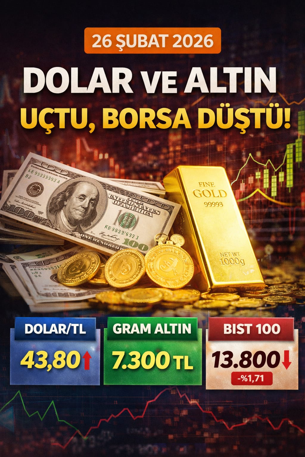 Türkiye’de finansal piyasalar 26 Şubat 2026 Perşembe günü dalgalı bir seyir izledi. Döviz kurları ve altın fiyatlarında yükseliş eğilimi sürerken, Borsa İstanbul’da satış baskısı öne çıktı. Yatırımcılar hem küresel ekonomik gelişmeleri hem de Türkiye’deki para politikası beklentilerini yakından takip ediyor.